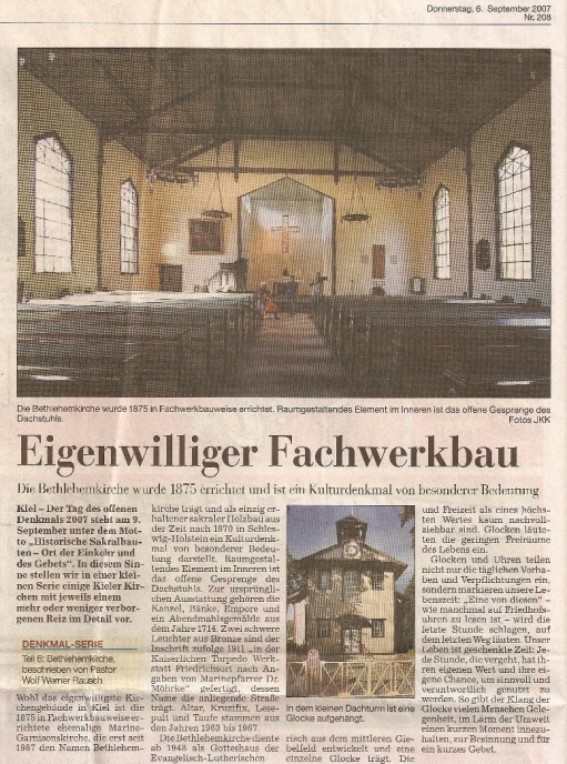 木組み建築(Fachwerkbau)のベツレヘム教会は1875年に建てられ、1987年よりシュレスヴィヒ・ホルシュタイン州の文化財に指定されているそうです。